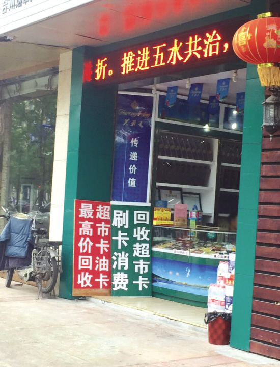(6月2日下午,在市府大道附近一家烟草零售店门口,挂着“刷卡消费”的牌子)