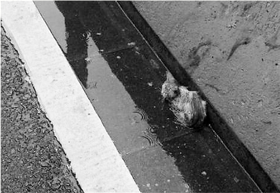 带着受伤的母猫,上了高架后的“伯爵”又在文晖路下桥附近发现了广播中提到的那只流浪猫。“是一只黄白色的小奶猫,在雨中被淋得浑身湿透,应该还不到2个月大,很瘦。”