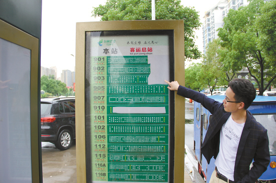 就在采访时,乘客王先生拉住了记者苦恼地问:“请问,你知道去火车站是坐几路车吗?”原来,王先生赶着要去火车站,但是这被破坏的站牌上没有显示前往火车站的信息。