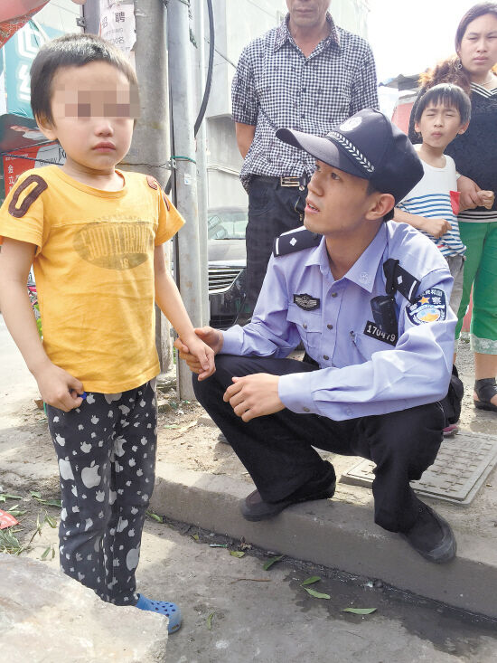 民警很快赶到现场,小男孩大约五六岁,身着黄色上衣,哭得嗓子都哑了,有几个热心市民围着他,哄着劝着。