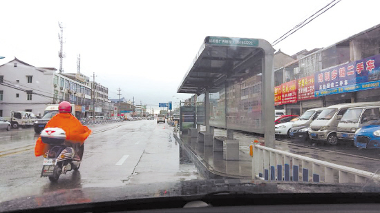 但是,路桥新安南街下包站台却正好相反的。6月9日中午,记者驱车来到这里观察——从西往东看,和别的站台一样,距离站台二三十米时,道路护栏先向外拐,引导公交车驶入,但随后靠近站台时,又莫名向机动车道凸出,将半个站台位置都占据了。