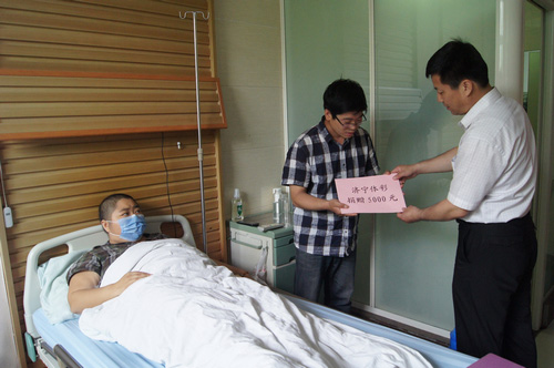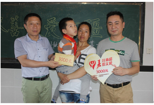 王华英就是本次活动的第一个主人公。当日上午,在和王华英母子交谈后,上饶体彩分中心工作人员代表江西体彩为其送上爱心款3000元,勉励这对坚强的母子战胜困难,坚持康复训练。