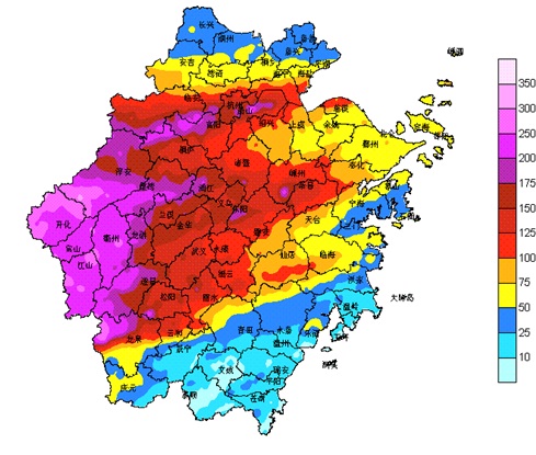 据省气象台统计,从7日早上8点到今早8点,全省面雨量(编者注:是指整个区域内单位面积上的平均降水量)已达94毫米,其中衢州市以高达216毫米的面雨量居全省之首,紧接着是杭州市的152毫米和金华市的138毫米、