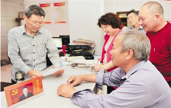 6月10日,在玉环县楚门镇蒲田村,党员在村部坐班,为一位村民办理低保申请。为进一步发挥农村党员作用,玉环推行党员轮流值班制,4200余名农村党员参与村(社区)轮流值班,处理村务、协助便民代办、宣传政策法规等。林楚炳赵梦琦摄