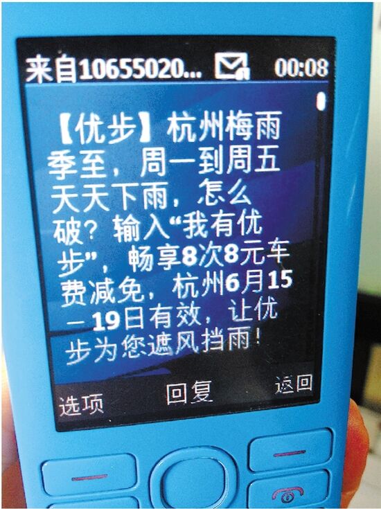 以昨日的杭城专车为例,记者分别收到了“滴滴快的”和Uber的优惠活动信息如下:“滴滴快车”表示周一前两单分别补偿两张8元券;Uber则在一周内直接发了8张8元券。