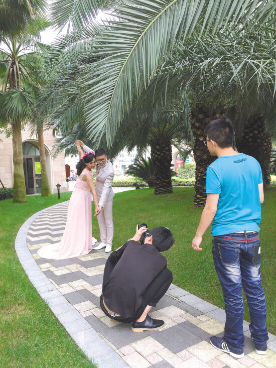 “现在很多小区都是不对外开放的,除非自己或者有朋友住在小区里,才能进去拍摄。另外,现在很多小区风景虽然优美,但是没有自己的特色,而且从取景角度看,并不合适拍婚纱照。因此,除非客户要求在小区拍摄,我们一般是不主推在小区拍摄的。”椒江576印象摄影负责人小丽说,“我们一般会到象山、横店、温岭东部新区等自然景观中拍摄。”