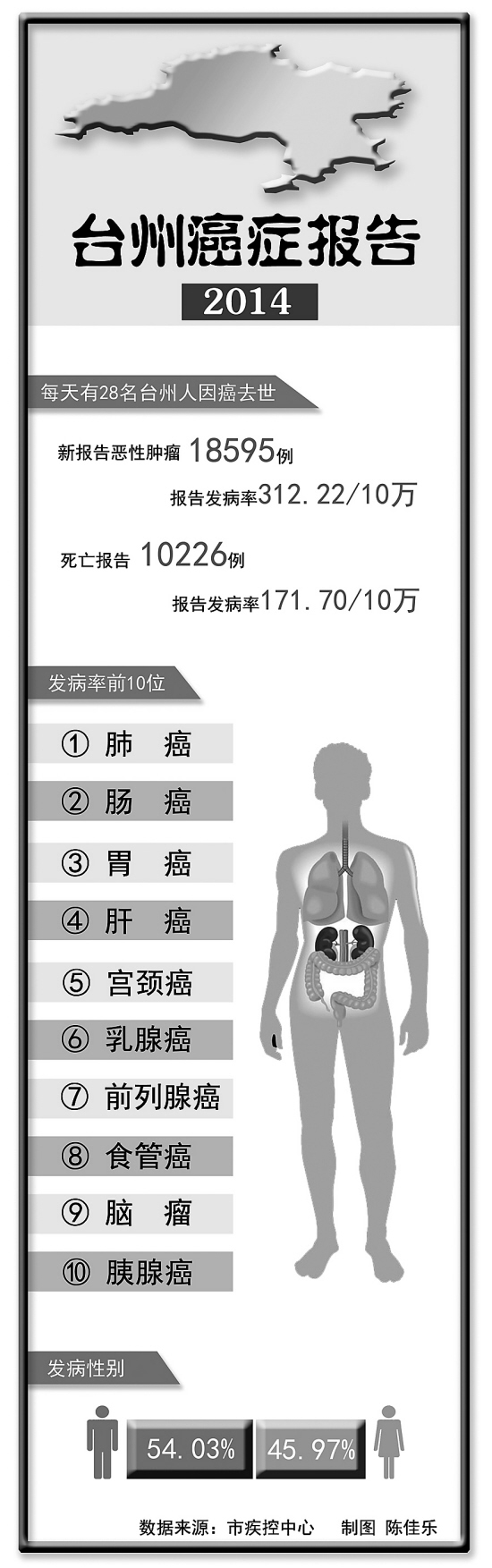 平均每天有28个台州人因癌去世,男性患癌率高于女性