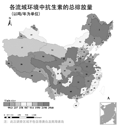 中国抗生素污染总体情况到底如何?中国科学院广州地球化学研究所应光国课题组获取首份中国抗生素使用量和排放量清单,预测得出全国58个流域的“抗生素环境浓度地图”。这一报告于6月初发表在国际学术期刊《环境科学与技术》。