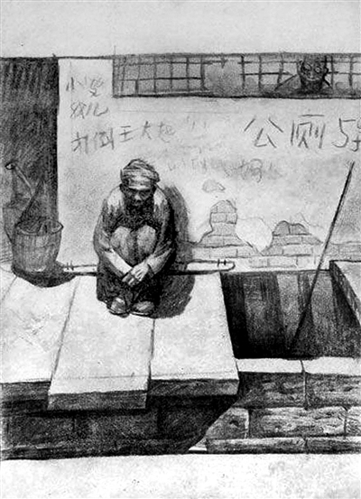 经历了十年动乱之后重获学习机会的那批大学生,大多不是从校门到校门的普通学生。他们经历了一次又一次的政治运动,有过上山下乡的艰苦经历。对中国社会的深刻认识和长期受到压抑的知识分子独立性思考,令他们有着强烈的社会责任感和历史使命感。所以,当罗中立在一个雨雪交加的除夕夜里,看到公厕旁边一个忍饥挨饿的守粪农民的时候,他那种双手插在袖中靠在墙边扁担上的僵硬姿态、那种呆滞麻木的神态与周围人家团聚的喜悦气氛间的巨大反差,瞬间震动了画家的心灵。夜渐深,除夕的欢闹渐息,罗中立仍然难以平复内心的复杂感受,“只见昏灯下他仍在那儿,夜来的寒冷将他‘挤’到粪池边的一个墙角里,身体缩成一个团,而眼睛,一双牛羊般的眼睛却死死盯着粪池,如同被迫到一个死角里、除了保护自己之外,绝不准备作任何反抗的人一样”。眼前的这一幕让罗中立产生了一种强烈的冲动,他要为这些老实巴交的农民去喊叫。这些一生勤恳的农民,不论是过去还是现在,都是如此的贫苦,在同情、怜悯、感慨中,罗中立记录下了最初的《守粪农民》。