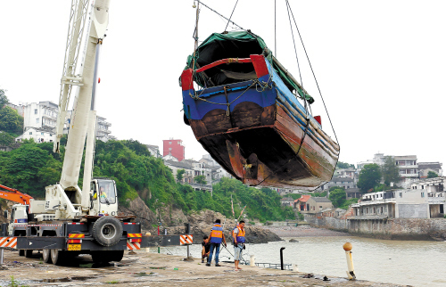 6月19日,玉环县海洋与渔业执法大队在该县坎门街道灯塔、红旗、黄门等岙口开展地毯式清港行动,查获11艘“三无”渔船,其中钢质1艘,钢架泡沫船2艘,木质8艘。