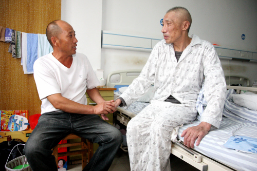 6月11日,仙居第二人民医院住院部三楼,躺在病床上的沈启茂再一次见到了20多年前的恩人。“小中,是小中吧!”他的妻子应忠一喊着恩人的名字,神色难掩激动。