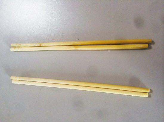 “我偶然发现,一次性筷子在热水里浸泡水会变黄,筷子也会变黄。”市民金先生说,前段时间,几个朋友到他家吃饭,为了省事,他在楼下的一家小饭店要了几个菜,并拿了七八双一次性木筷,“回到家,我发现有的筷子弯曲变形,有的很脏,我就用开水泡了泡,没想到水变黄了,筷子也变黄了。”金先生怀疑过筷子的质量,却未质疑过筷子放了多久。