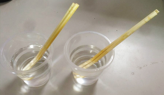 实验时间:6月22日实验用具:一次性筷子、自来水、热水