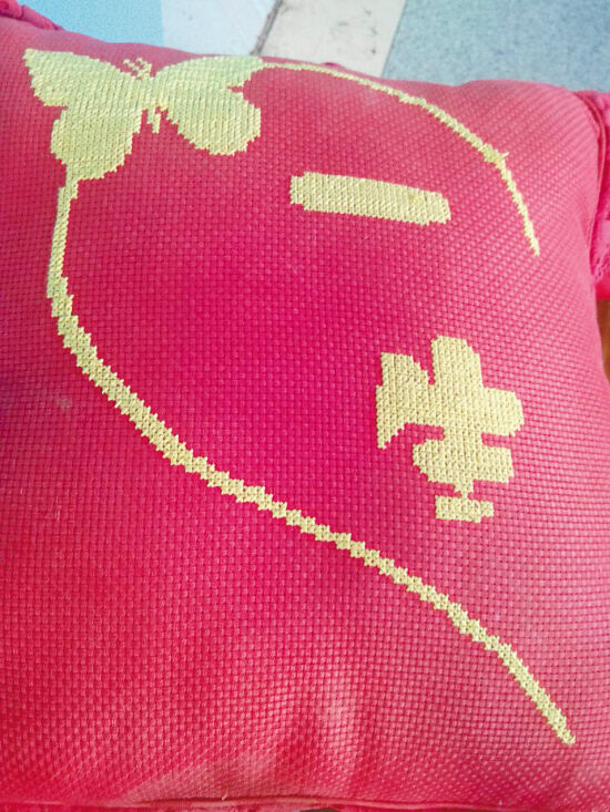 莲莲喜欢折千纸鹤,很早的时候就学会了,她做事有耐心,这些手工活学得快做得也不赖。她还绣了两个十字绣抱枕,“这些我自己学会的,挺简单的。”