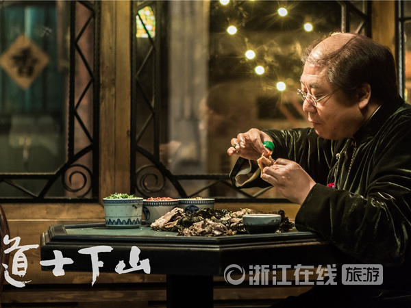 王宝强饰演的小道士下山后接触的第一个城市,就是民国时期的杭州。而最先吸引他的,居然是范伟买的叫花鸡,正是这只鸡,让王宝强与在片中饰演夫妇的范伟和林志玲发生了关系,继而引发了接下来一系列的故事。