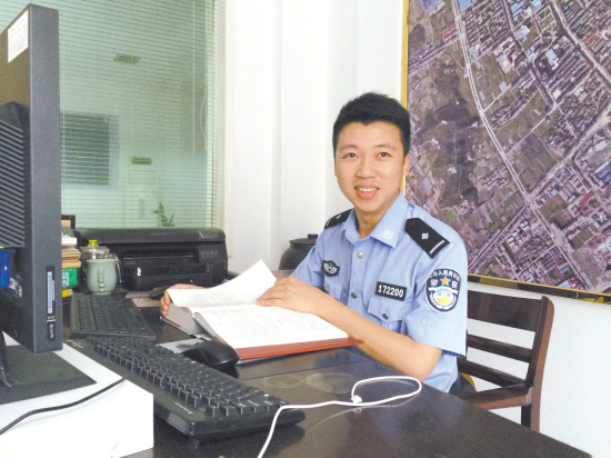 昨日中午12点,记者走进陈成慧的办公室,他正对着办公桌上的一叠文件查看案件资料。“基层民警在日常工作中,接触的面比较广,事情也相对复杂。所以,我们除了要具备过硬的业务素质外,其余各方面的知识有空还是要多学点的。”陈成慧说,他并不是什么才子,2008年高考的时候,他还把语文一科给考砸了。
