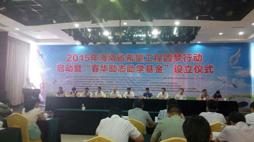 7月9日,2015年海南省希望工程圆梦行动暨“春华励志助学基金”设立仪式在海口启动。海南省体彩中心作为爱心单位,现场捐赠12万元支持圆梦行动,帮助海南省贫困学生圆大学梦。