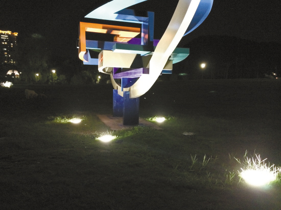 记者在现场看到,草坪上有多个雕塑,在每个雕塑的下方,都有若干个地灯提供照明,这些地灯,比较刺眼,人员走近,眼睛盯着看几秒钟再转向别处,视线就会变得很模糊,休息一会儿后才能恢复正常。