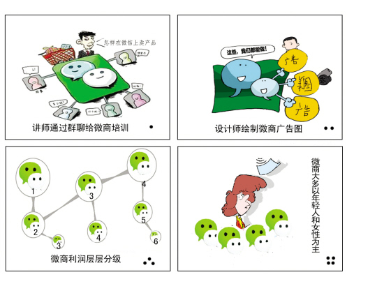 除了讲师团之外,平面设计师也是微信营销中的功臣——几乎每一个微商总公司,都会雇用一批平面设计师,为其产品设计合适朋友圈发的广告图。这些广告图,将会被代理商们广为沿用,散布到各自的微信朋友圈中。
