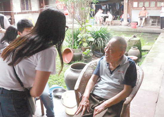 为了纪念中国人民抗日战争暨世界反法西斯战争胜利70周年,浙江理工大学法政学院社会实践小分队开展了寻访抗战老兵、进社区宣传等实践活动。图为队员们在天台寻访老兵。