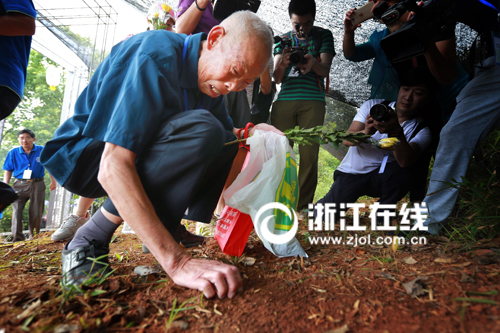 “我一直把这些阵亡将士当做是自己的父母,我也希望他们的家人总有一天可以来找他们,今天你们终于来了!”刘金国老人说着话,眼泪就流下来了,说话也不利索了。