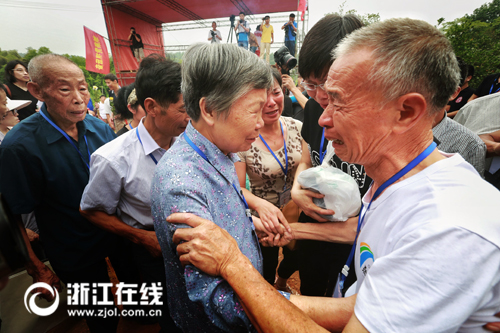 “终于把你们等来了!”守墓50年的刘金国老人(右)和裘爱卿老人,相逢只有眼泪