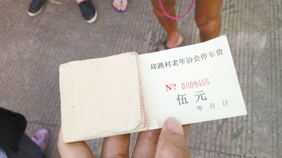 车主看到路边排起的长队,掏出5元付了钱,但并没有接过大妈给的票据。记者看到,收据是垟路村印的小票,有“垟路村老年协会停车费”字样,并没有盖公章。