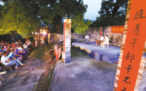 7月16日,黄岩区屿头乡沙滩村主职干部与村民面对面接受考评。记者牟永选摄