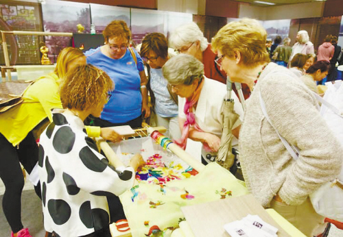 据了解,台绣是上世纪初由西方抽纱技艺与台州传统手工刺绣技艺相结合,逐渐发展为集抽、拉、包和雕200多种针法技艺为一体的,一种颇具特色的绣种。真丝刺绣旗袍、原衍生刺绣作品、刺绣围巾披巾、刺绣桌旗和刺绣靠垫等高端日常生活用品,在瑞士展出期间,受到国外观众的青睐。