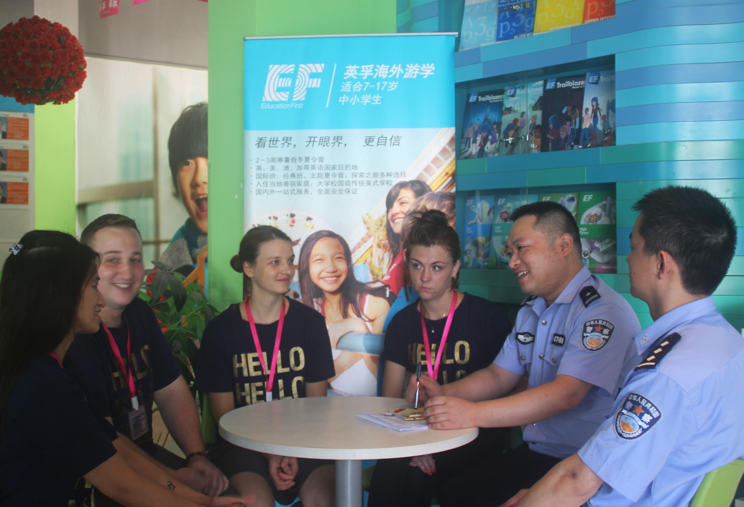 7月23日上午,玉环县公安局民警到英之辅语言培训学校,为在玉外籍教师送上了一堂法制课,并对其签证事由和工作事实进行了核对。期间,该局出入境管理大队民警林长鸿流利的口语、诙谐的谈吐,受到了外籍教师的欢迎。