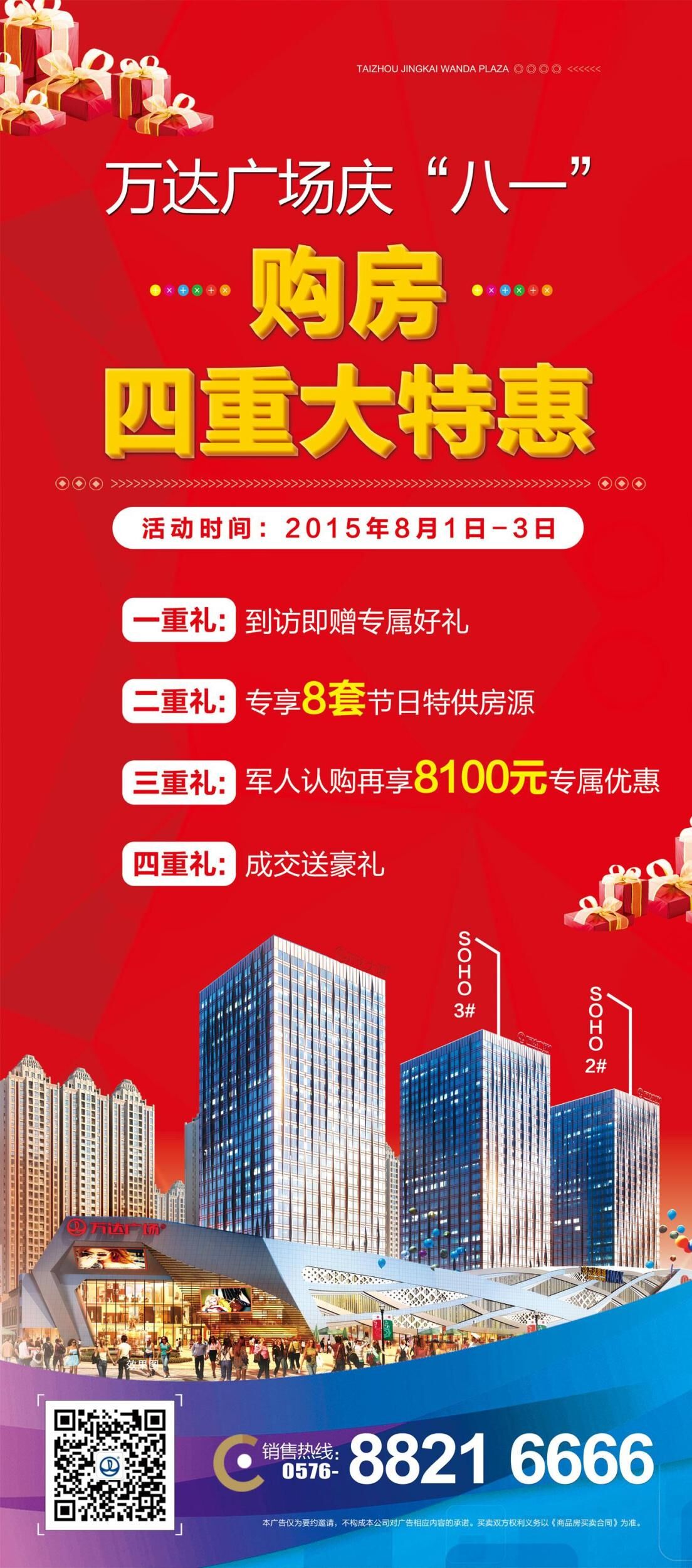 昨天,万达广场“庆八一·购房四重特惠”消息一放出,营销中心的销售热线就没有停止响过,连置业顾问手机也都接不停!看房客户更是络绎不绝!