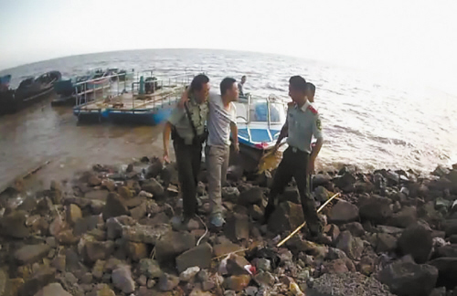 岛上没大树可以遮荫,边防官兵先让陈先生喝水解渴,怕他出现中暑意外,又给他喝了藿香正气水,随后对他进行简单包扎。由于小岛陡峭,担架派不上用场,官兵决定以背和搀扶的方式救他下岛。