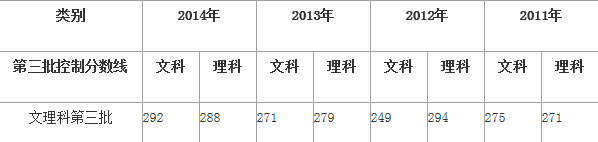 浙江高考历年文理科第三批次等控制分数线