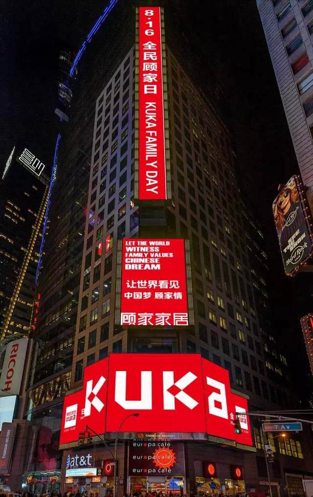 ※为了让更多的人感受到“中国梦,顾家情”,顾家家居斥巨资在美国时代广场播放这支“全民顾家日”主题片。