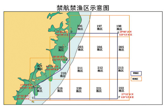 包括196、197、198、202、203、204、205、209、210、211、212、213、218、219、220、221、222共17个渔区。实际使用武器训练期间,严禁船舶驶入上述各点连线范围内水域,北上和南下的船只从123°12′00″E线以东海域航行,并听从外围警戒舰艇的指挥,以策安全。特此通告,望广大人民群众理解支持,相互转告。