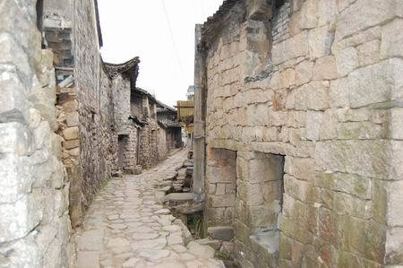 溪流“乳头屿泉”从鞍山岭头汩汩而流,经旱不断流,穿村而过,村内大部分人口倚水而居。一些山民把房子单门独户建在北面的后山上,灰墙黑瓦匍匐在山林间,从下往上看,这些房子莫不俨然悬挂在半空中!这些房子有个共同的特点,就是用大量的方石垒成,只在屋顶使用木料。
