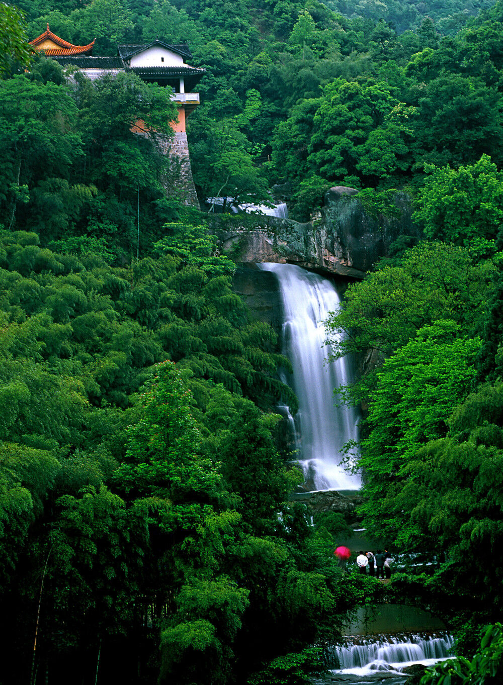 近瀑布的古方广寺为五百罗汉道场。中方广寺是禅宗道场。