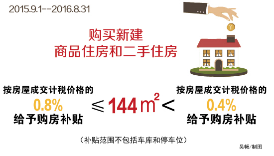 昨天,记者从市财政局了解到,今年9月1日至2016年8月31日,市区范围内购买新建商品住房和二手住房就有购房补贴。