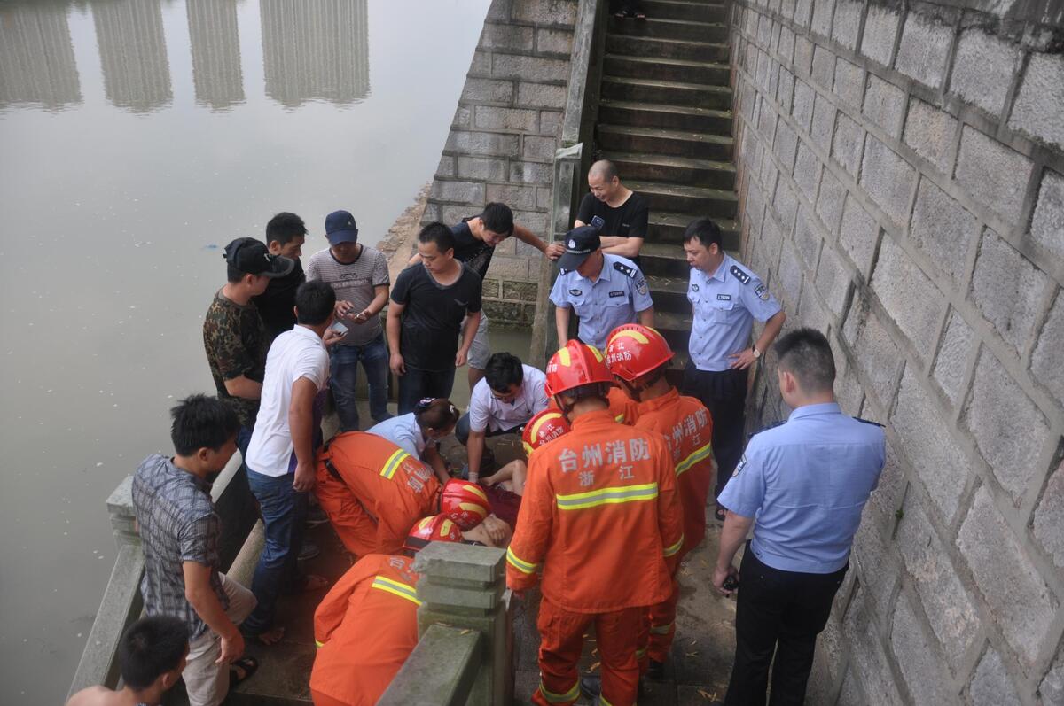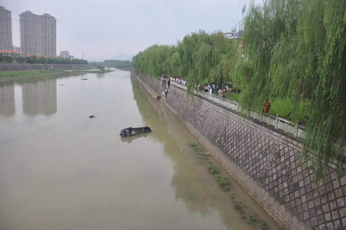 8月29日15点30分许,天台消防大队接到群众报警称:位于天台县始丰街道寒山路寒山桥附近有一辆小轿车掉进河里,有人员被困。接到报警后,天台大队立即出动两车,14名官兵前往处置。