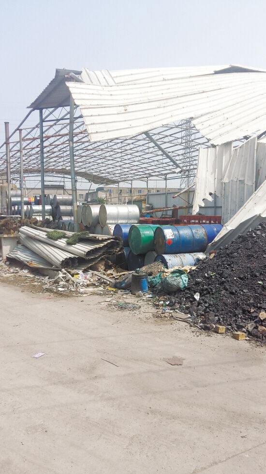因为佯称是顾客,当班的工人对记者没有戒备。记者仔细察看整个工场,里面一片狼藉,肮脏不堪——包括露天下的操作台在内,到处是炼制后留下的残渣,臭气冲天,路面一些小沟沟和窟窿里都是脏水,加温的锅炉也裸露着,没有任何安全设备。“燃烧时,废气直排,臭得不得了,也没有安全措施,每次经过,我们心里都在发抖。”附近一名做塑料加工的业主说,因为自己也在这边上办厂,不好意思劝说。
