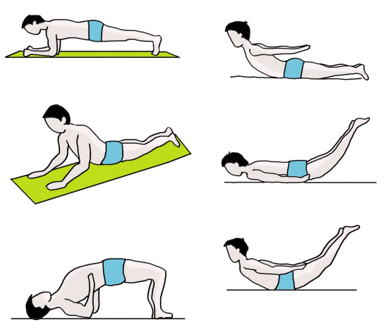 平趴在床上,以腹部为支撑点,头、上肢、腰、下肢一起向上挺,每天起床后、睡觉前各做5—10次,可以很好地锻炼腰背肌。