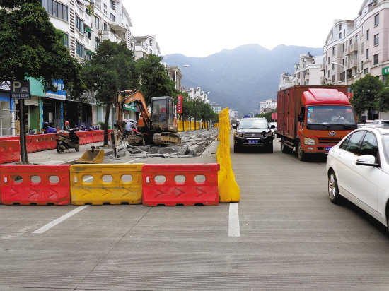 此次排水改造工程,就是为了改变这种情况,解决九峰区块的内涝问题。施工已经从8月底陆续开始,黄岩市政工程施工队对路面进行了隔离,开始破开水泥路面,下一步将进行排水管道安装。