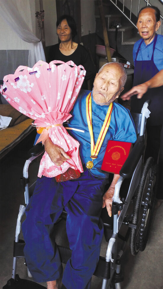 年轻时征战沙场,身扛重机枪杀敌无数;抗战胜利卸甲归田,躬耕70年——临海市东塍镇长坦村的抗战老兵郭良永,如今已是94岁高龄,几个月前中风瘫痪,原本健朗的老人要靠卧床度日(详见本报9日5版)。昨天一大早,记者就接到许多关心老人的电话,不仅当地镇政府已在帮老人申请轮椅等生活用品,一家企业更是直接将轮椅送上家门。