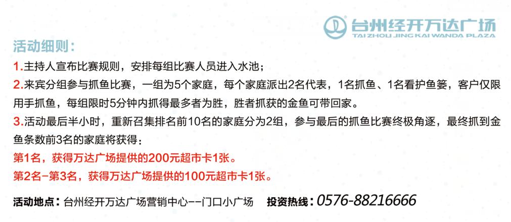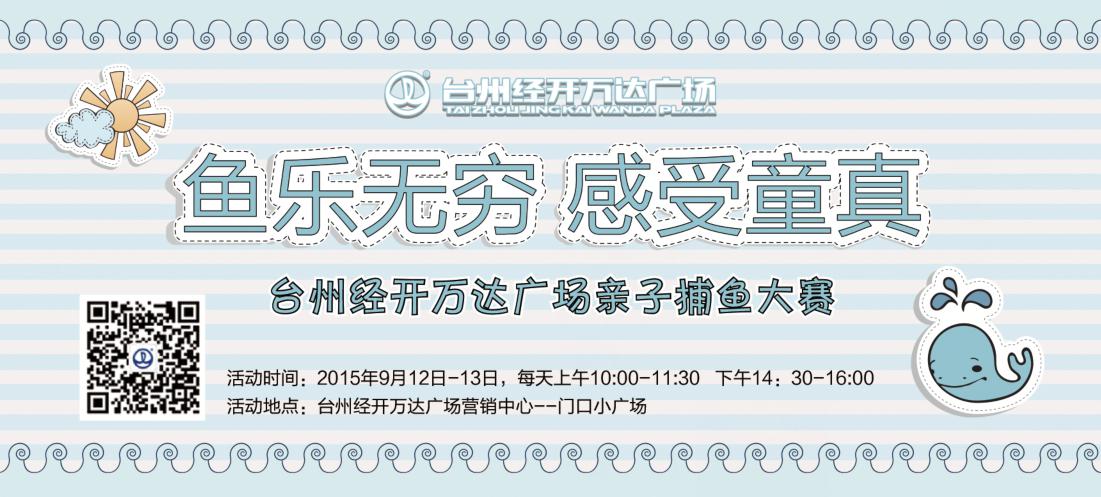 9月12日-13日,每天上午10:00-11:30,下午14:30-16:00,万达广场亲子捕鱼大赛将于台州经开万达广场营销中心——门口小广场火爆开启。