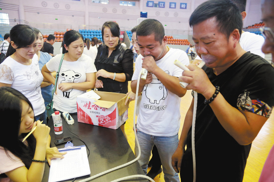 9月14日上午,温岭市第六届企业职工运动会暨第二届新温岭人运动会体能测试在温岭体育馆举行,16支代表队的运动员混合组队参与了肺活量、握力、坐位体前屈和闭眼单腿站立等4个项目的比赛。