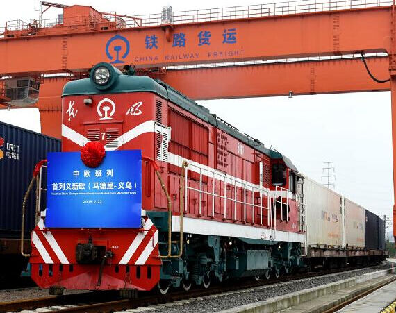 2014年11月18日,装载着82个标准集装箱出口小商品的首趟“义(乌)新(疆)欧(洲)”铁路国际货运班列从浙江义乌驶出,一路向西,在途经哈萨克斯坦、俄罗斯、白俄罗斯、波兰、德国、法国、西班牙,历时约21天、行程13052公里后,到达目的地——西班牙马德里。