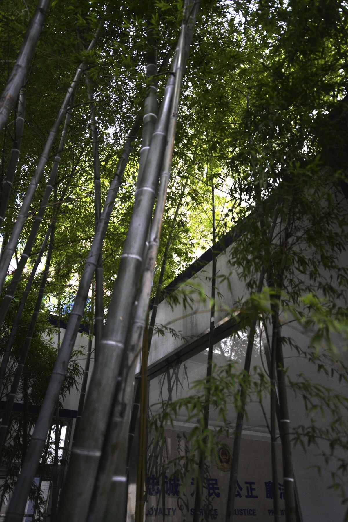 走进大麦屿派出所,首先映入眼帘的是院内的那一丛挺拔茂密的小竹林。一棵棵翠竹笔直高耸,生机蓬勃。