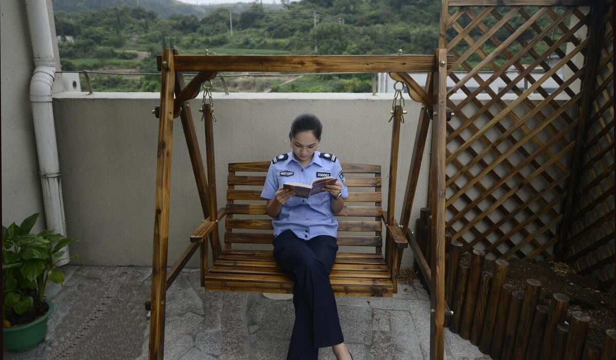 从三楼拾阶而上,浓浓的文化气息扑面而来。楼梯两侧墙面悬挂着所里民协警的摄影、书画作品。工作之余,六七楼是民协警门休憩的好去处。在六楼心理辅导室,泡上一壶香茗、读几本书,仿若给心灵做了个“SPA”;若是想看大片,尽管到隔壁放映室,戴上3D眼镜,来场视觉盛宴;七楼活动中心则成了健身乐园,优雅的斯诺克、全民乒乓、疯狂单车,小众飞镖……让爱好者们时不时来场“厮杀”,挥洒汗水、放松心情,以更积极、阳光的心态迎接工作上的每一次挑战。