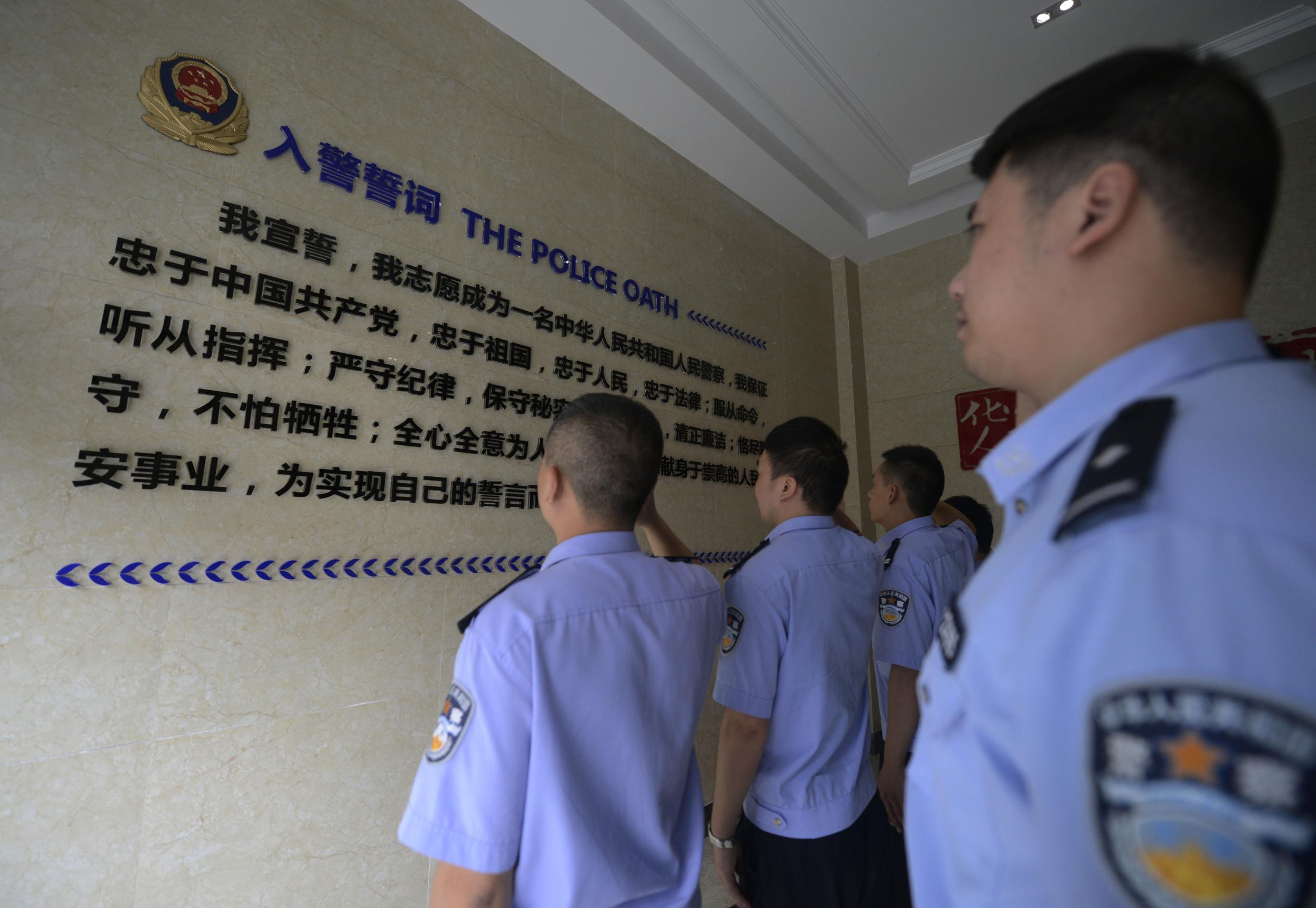 进入办公大楼,左侧内墙是庄严的入警誓词。“我宣誓,我志愿成为一名中华人民共和国人民警察……”沉甸甸的黑字嵌在墙上,也烙在每位民警的心上。