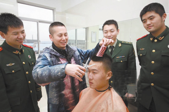 俞圣越还有一个特殊身份——浙江边防总队台州边检站监护中队的警营“雷锋剪”。